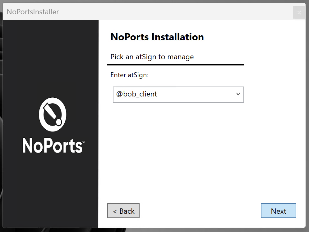 #### 1.2 Enter the atSign you wish to manage and click "Next"