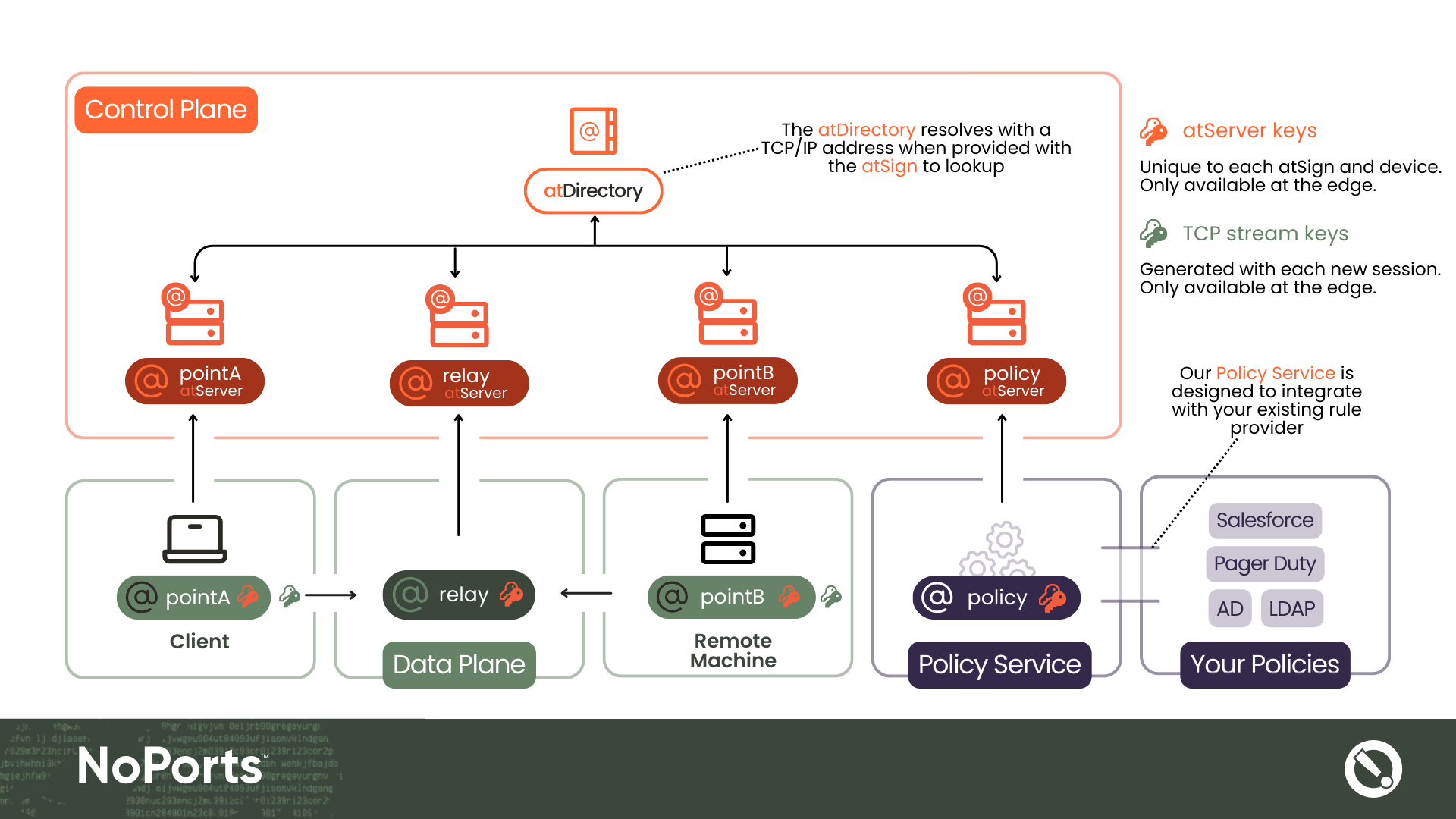 <figure><img src="https://2080310565-files.gitbook.io/~/files/v0/b/gitbook-x-prod.appspot.com/o/spaces%2FxDhnoLkxryJhtCjj7mE2%2Fuploads%2FYKMIRphtDHPDGVHRzSAC%2FNoPorts%20Policy%20Diagrams.png?alt=media&#x26;token=33a0b634-9d26-4fa4-977c-5d0fefaa14e2" alt=""><figcaption><p>High level overview of the NoPorts architecture</p></figcaption></figure>